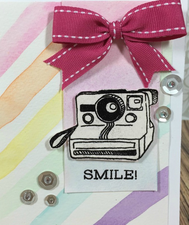 Today, I have a card that I made using the stamp of the month called Life in Pictures and some watercolors.