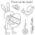 For the sentiment I just made a little banner by cutting a narrow strip of white cardstock. Then, I stamped in the center using Juniper ink and the Hoppy Easter stamp set. Next, I scored the paper on either side of the stamped sentiment folded it back and then forward again to make the banner shape. You can made the little duck tail ends with scissors or a square punch.